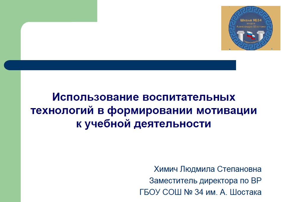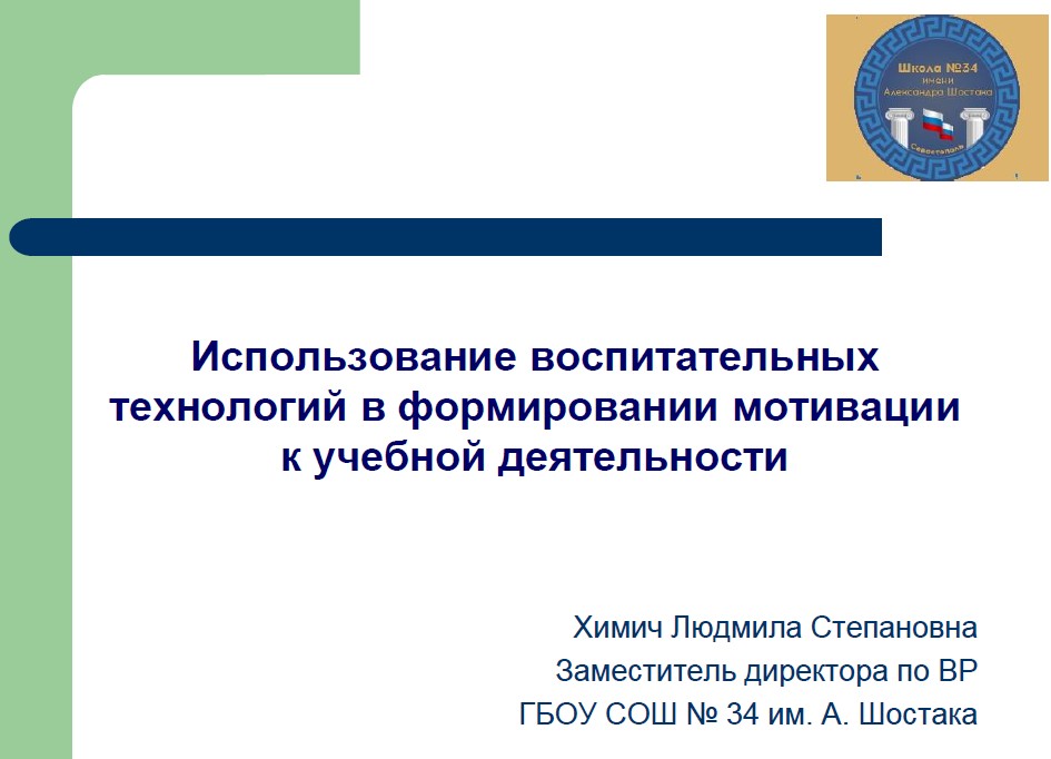 «Использование воспитательных технологий в формировании мотивации к учебной деятельности» Химич Людмила Степановна, заместитель директора по ВР ГБОУ СОШ № 34