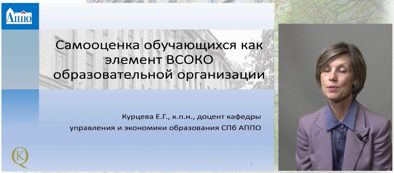 «Самооценка обучающихся как элемент ВСОКО» - Курцева Елена Геннадьевна к.п.н, доцент кафедры управления и экономики образования СПб АППО, сертифицированный эксперт РАО, эксперт совета по развитию инновационной инфраструктуры в сфере образования СПб