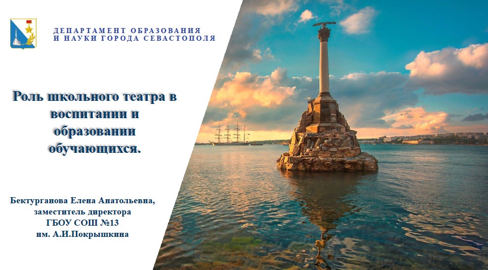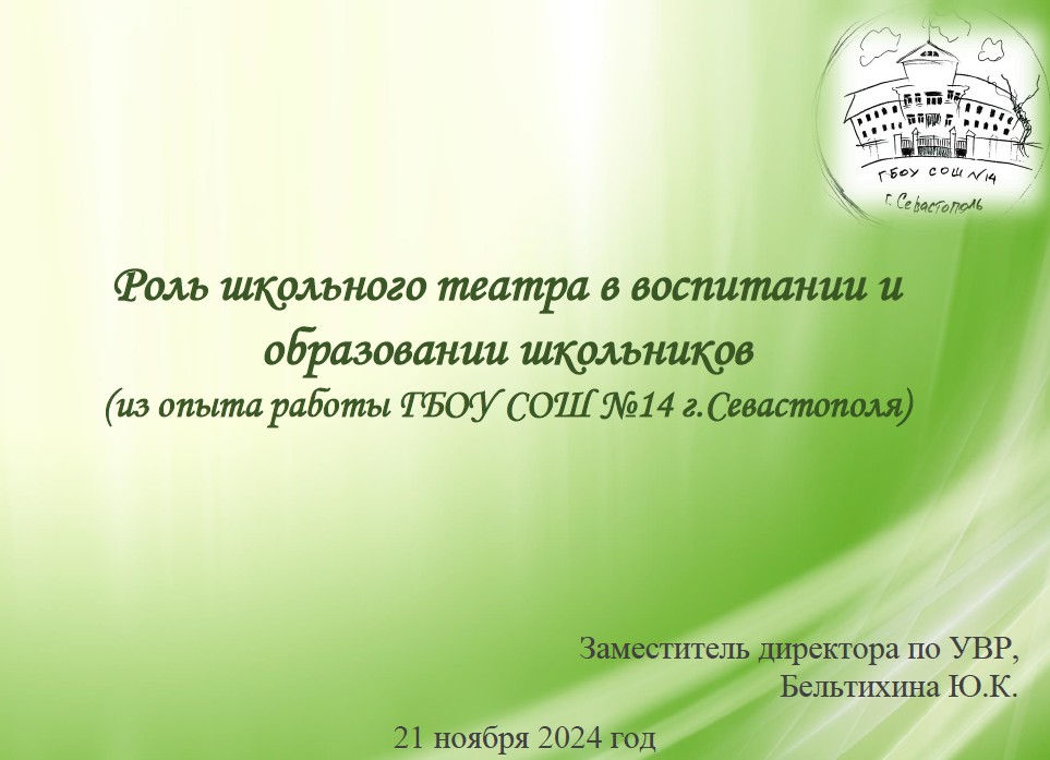 «Роль школьного театра в воспитании и образовании школьников» - Бельтихина Юлия Константиновна, заместитель директора по ВР ГБОУ СОШ № 14