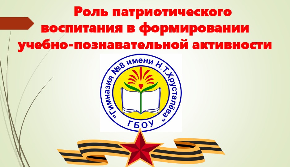 «Роль патриотического воспитания в формировании учебно-познавательной активности» - Канаева Ольга Анатольевна, заместитель директора по ВР ГБОУ Гимназия № 8