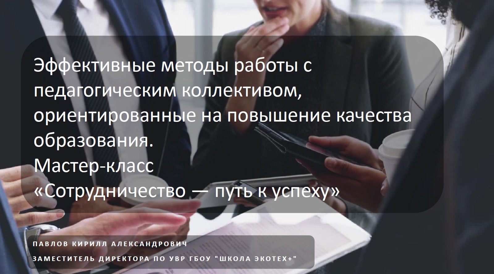 «Сотрудничество – путь к успеху» (использование современных методов в обучении) - Павлов Кирилл Александрович, заместитель директора ГБОУ ЭКОТЕХ+