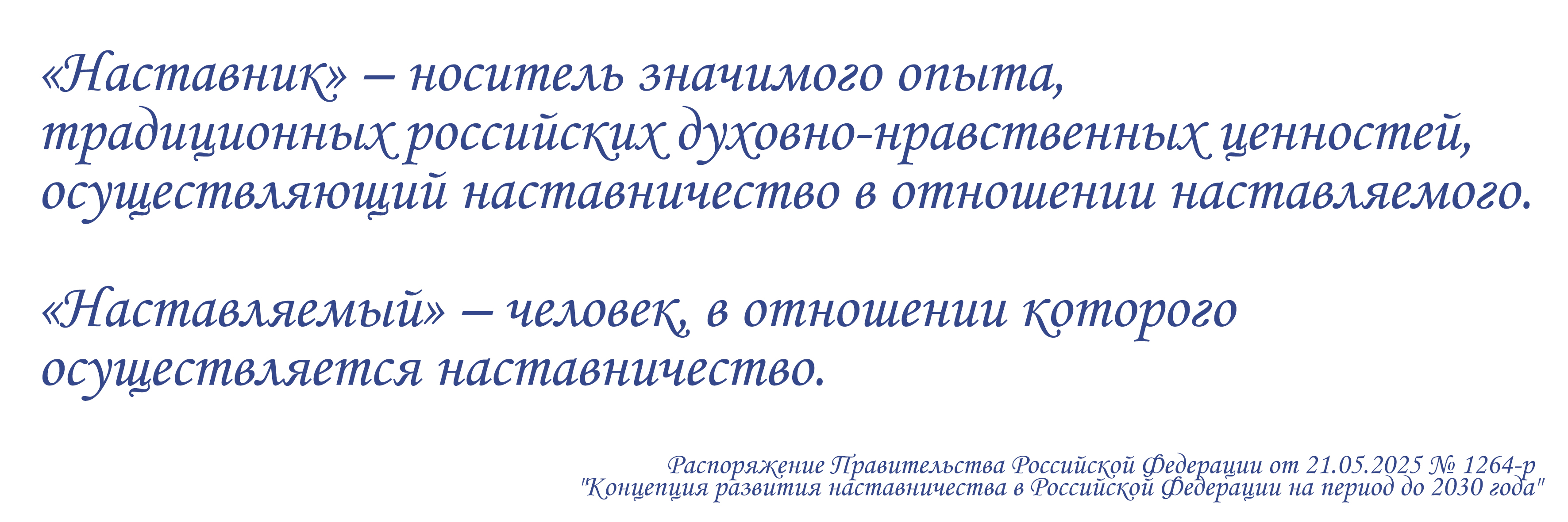 Наставничество - социально-педагогическая технология сопровождения личностного и профессионального развития человека, формирования у него традиционных российских духовно-нравственных ценностей