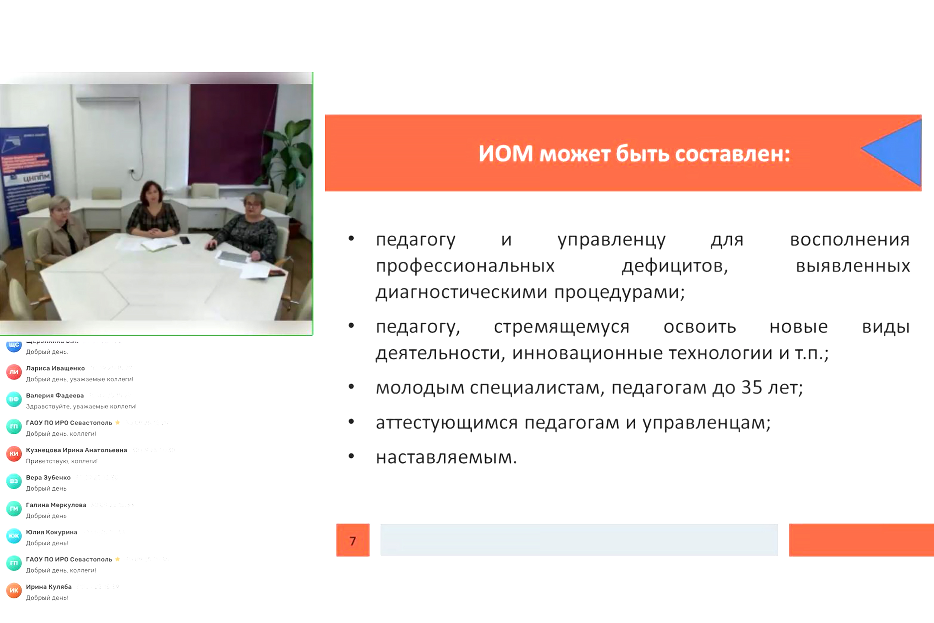 На заседании региональные методисты получили рекомендации по работе в цифровом кабинете, приглашение на индивидуальные и групповые консультации по составлению ИОМ и по сопровождению педагогов при их реализации. По окончании для региональных методистов была произведена рассылка материалов заседания.
