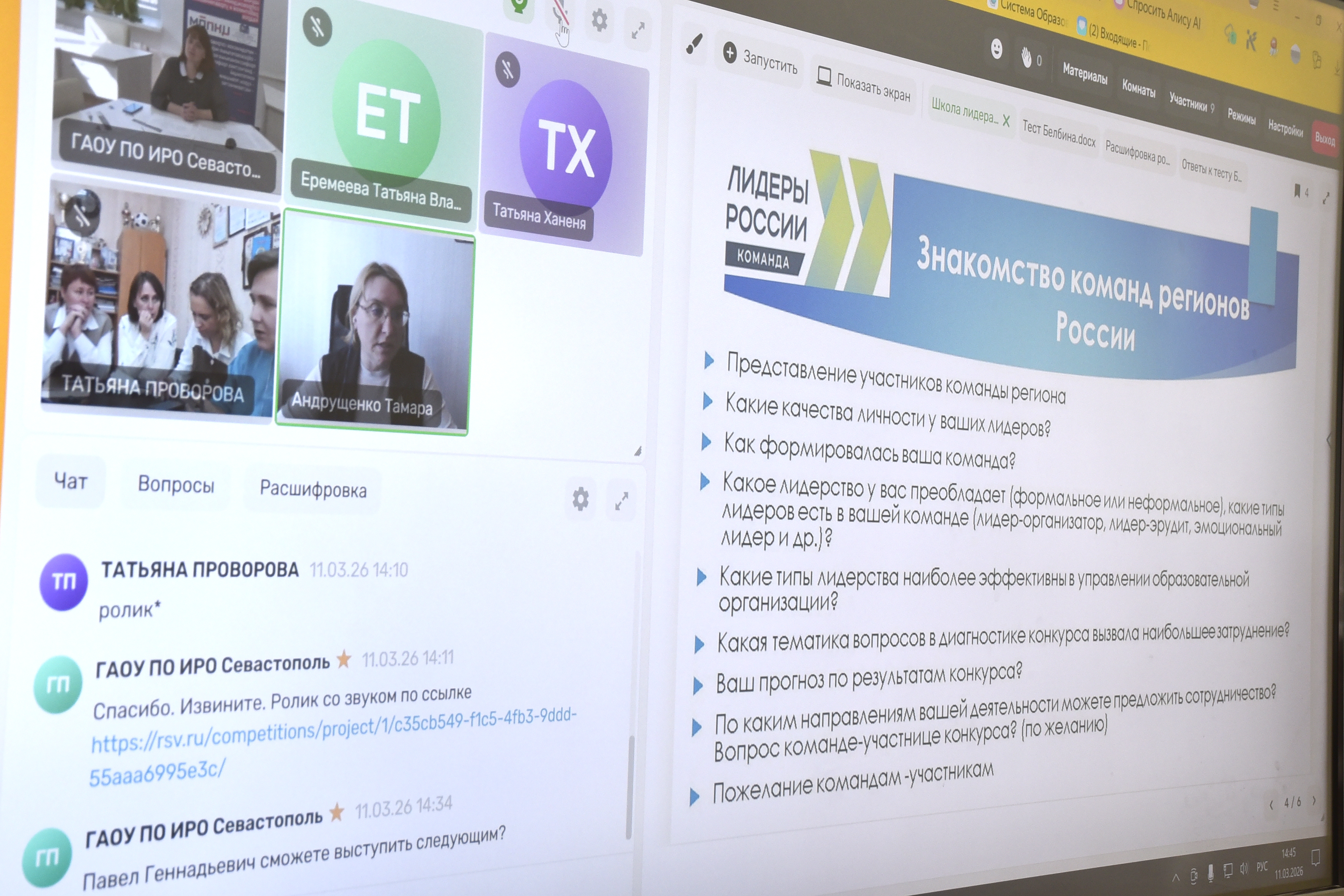 11 марта 2026 года в Школе лидера прошёл межрегиональный телемост «Лидер ли я?», нацеленный на установление партнерских связей, развитие лидерского потенциала управленческих команд образовательных организаций, выявление личностных лидерских качеств и возможностей их применения в управленческой деятельности. Модератором мероприятия выступила Е.Л. Филимонова, начальник ЦНППМ ПР ГАОУ ПО «Институт развития образования» города Севастополя, эксперт «Созвездия Флагманов образования». Она подчеркнула актуальность темы, раскрыла понятия «лидер» и «лидерство», а также отметила важность лидерских качеств руководителя при формировании управленческой команды.