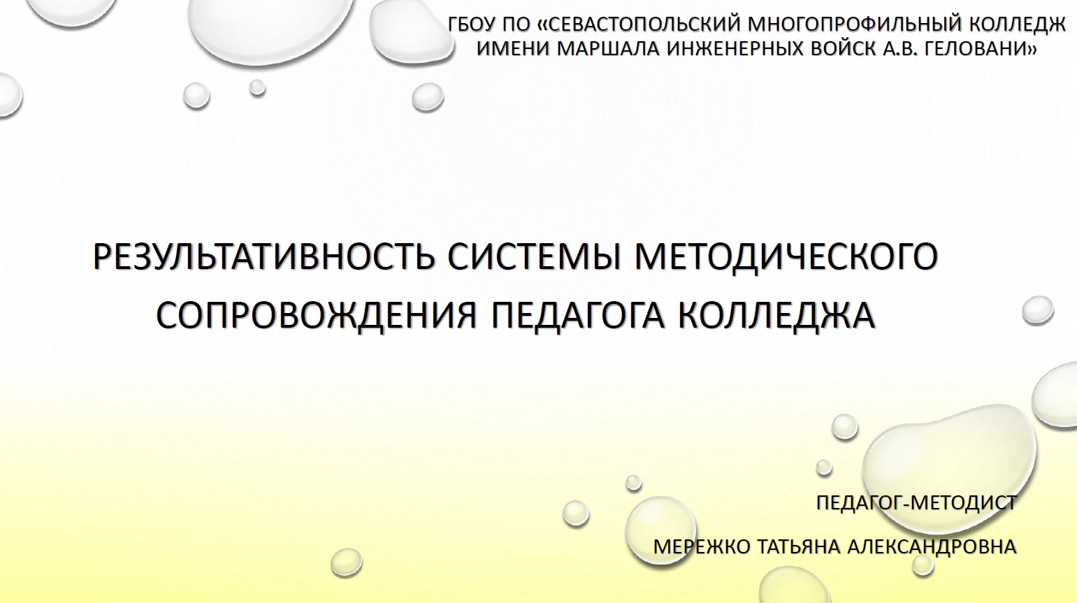 Результативность системы методического сопровождения педагога колледжа - Мережко Татьяна Александровна