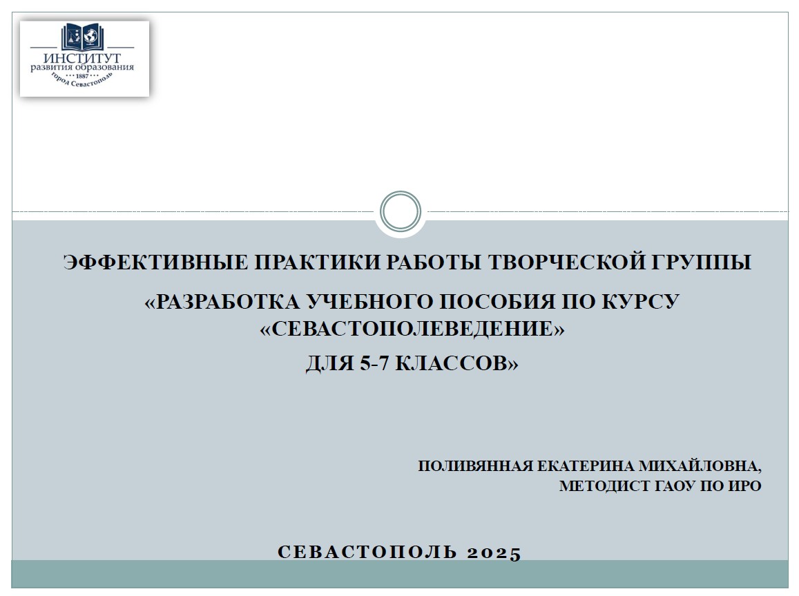 Эффективные практики работы творческой группы «Разработка учебного пособия по курсу «Севастополеведение» для 5-7 классов» - Поливянная Екатерина Михайловна