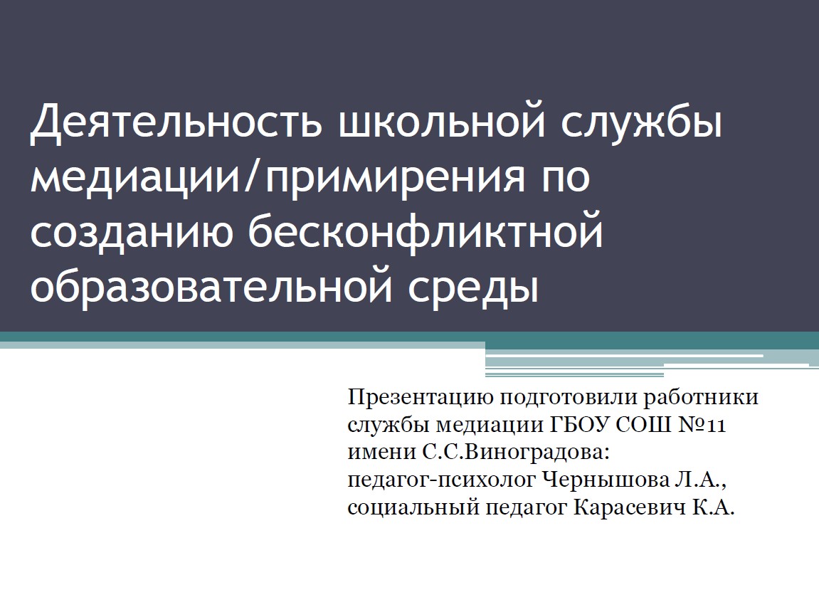 Деятельность школьной службы медиации/примирения по созданию бесконфликтной образовательной среды - Карасевич Константин Александрович, Чернышова Любовь Анатольевна