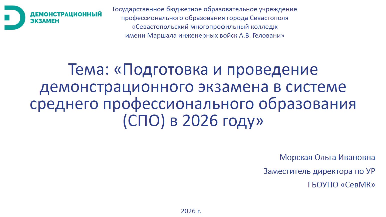 Особенности организации демонстрационного экзамена в колледже (из опыта работы) - Морская Ольга Ивановна (г. Севастополь)