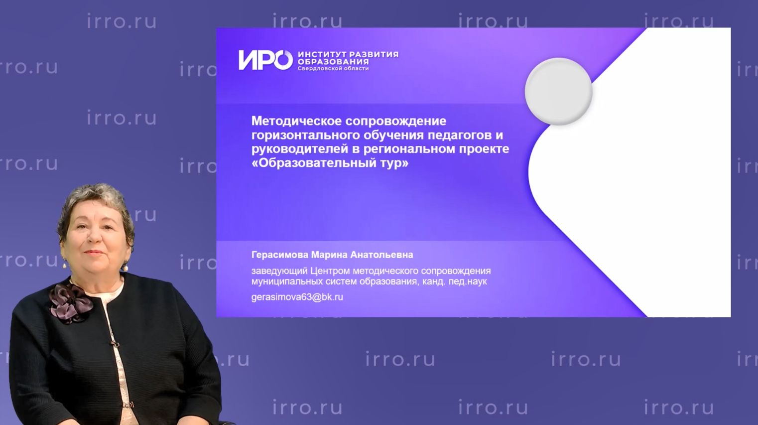 Методическое сопровождение горизонтального обучения педагогов и руководителей в региональном проекте «Образовательный тур» - Герасимова Марина Анатольевна (г. Екатеринбург)