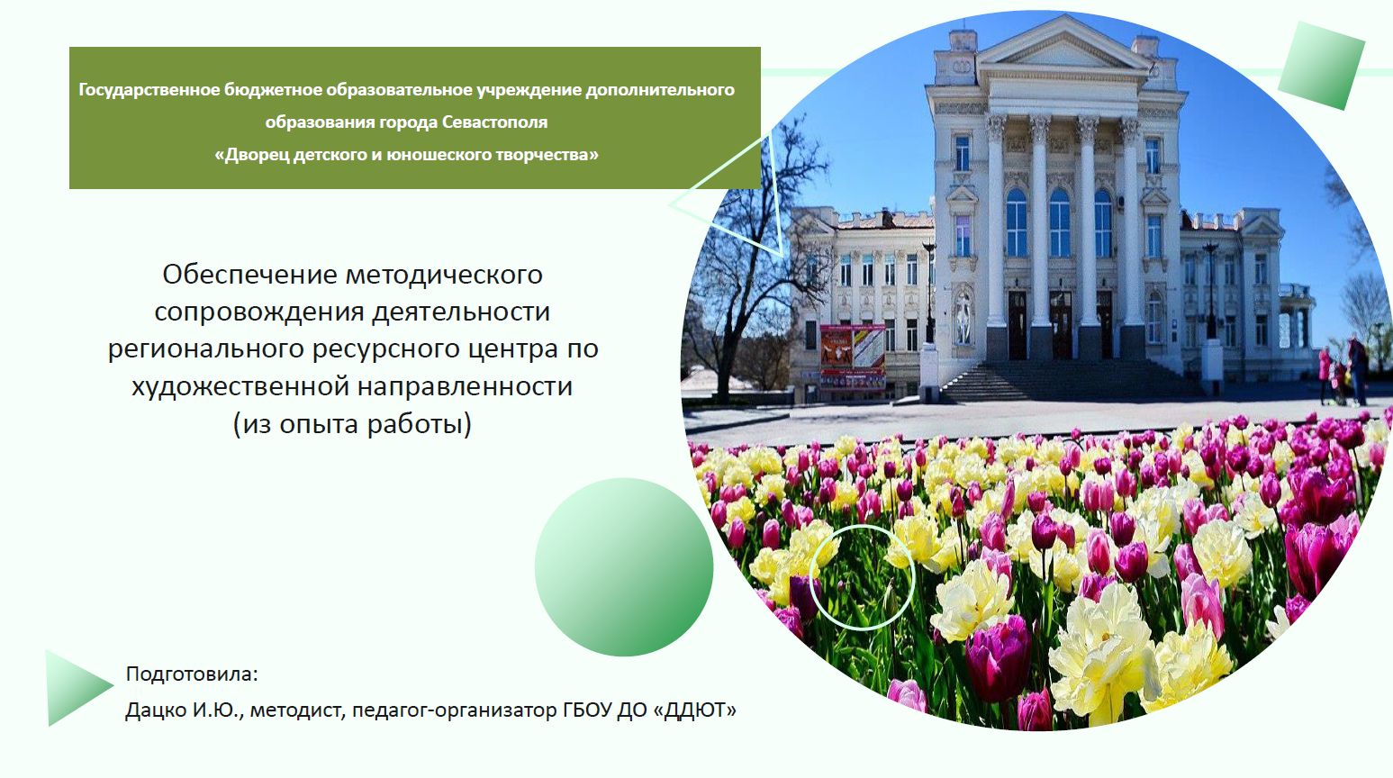 Обеспечение методического сопровождения деятельности регионального ресурсного центра по художественной направленности (из опыта работы) - Дацко Ирина Юрьевна (г. Севастополь)
