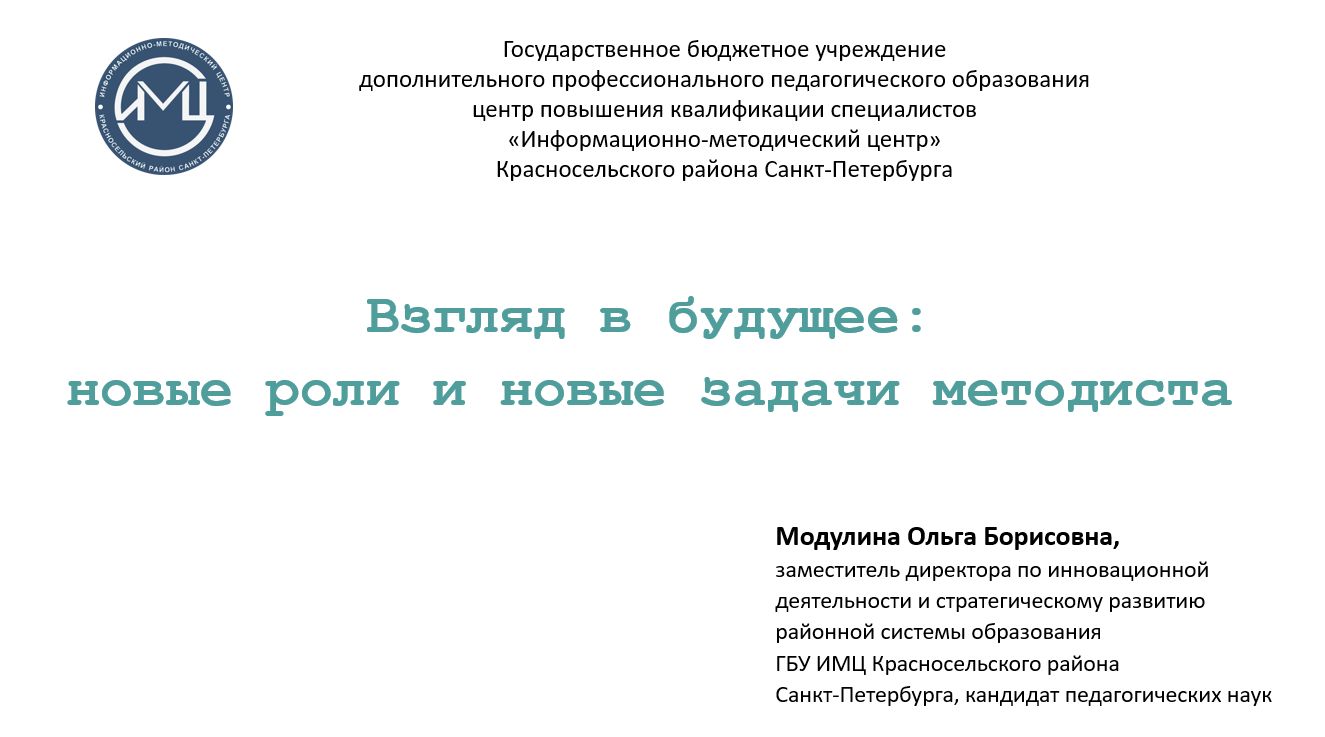 Взгляд в будущее: новые роли и новые задачи методиста - Модулина Ольга Борисовна (г. Санкт-Петербург)