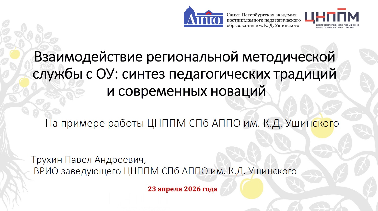 Взаимодействие региональной методической службы с образовательными учреждениями: синтез педагогических традиций и современных новаций - Трухин Павел Андреевич (г. Санкт-Петербург)