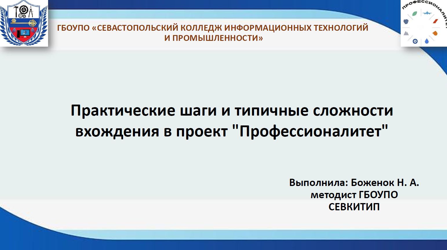 Практические шаги и типичные сложности вхождения в федеральный проект «Профессионалитет» - Боженок Наталья Анатольевна (г. Севастополь)
