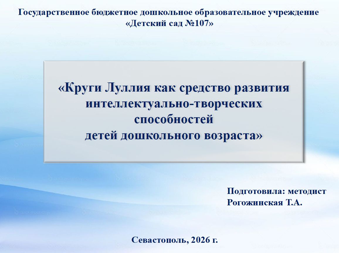 Круги Луллия как средство развития интеллектуально-творческих способностей детей дошкольного возраста - Рогожинская Татьяна Арсентьевна (г. Севастополь)
