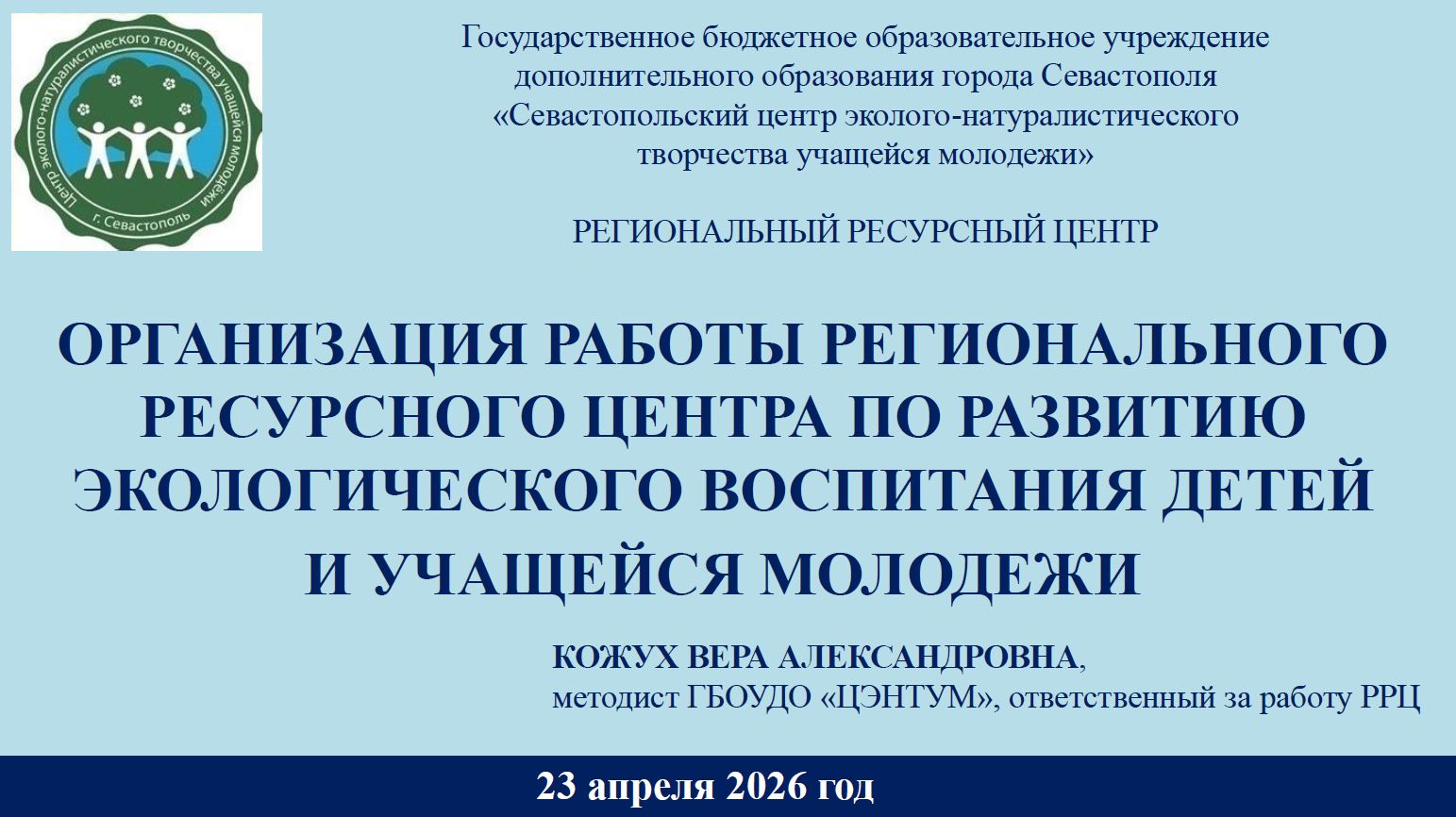 Организация работы регионального ресурсного центра по экологическому воспитанию детей и учащейся молодёжи (из опыта работы) - Кожух Вера Александровна (г. Севастополь)